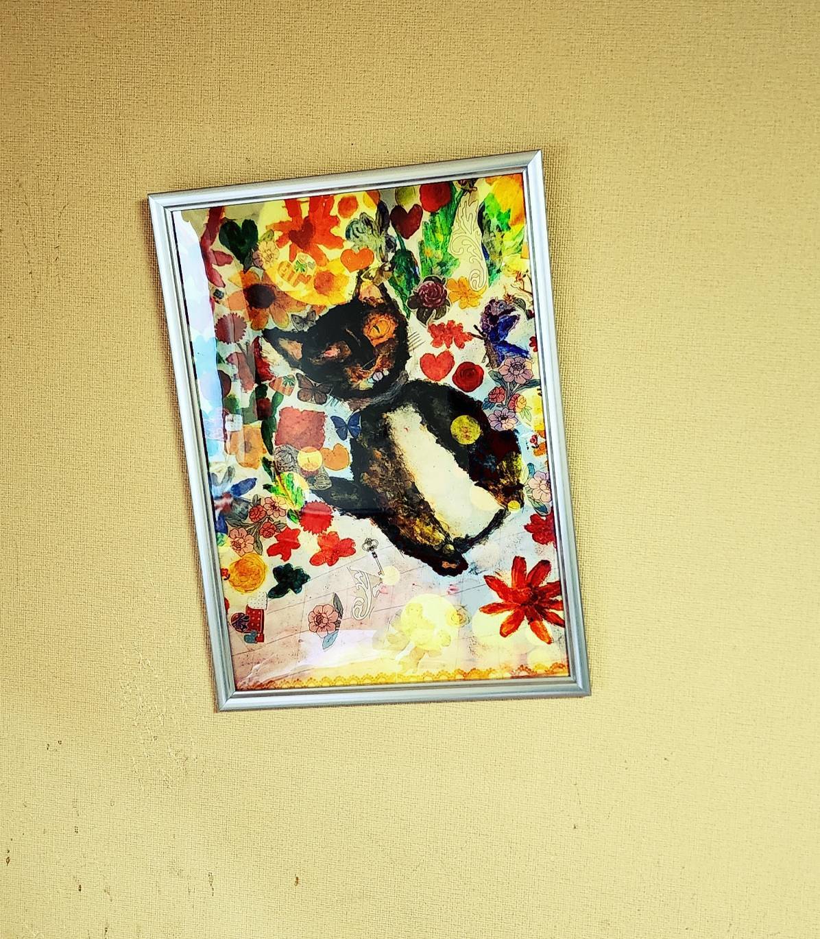 今回のみ、「猫展」出品時と同じ価格でフレーム付き、1名様1点限定で販売します!早い者勝ちですよ°˖✧◝(⁰▿⁰)◜✧˖° 画像左側は実際に壁に掛けた状態ですが、少し斜めになっています(;^_^A